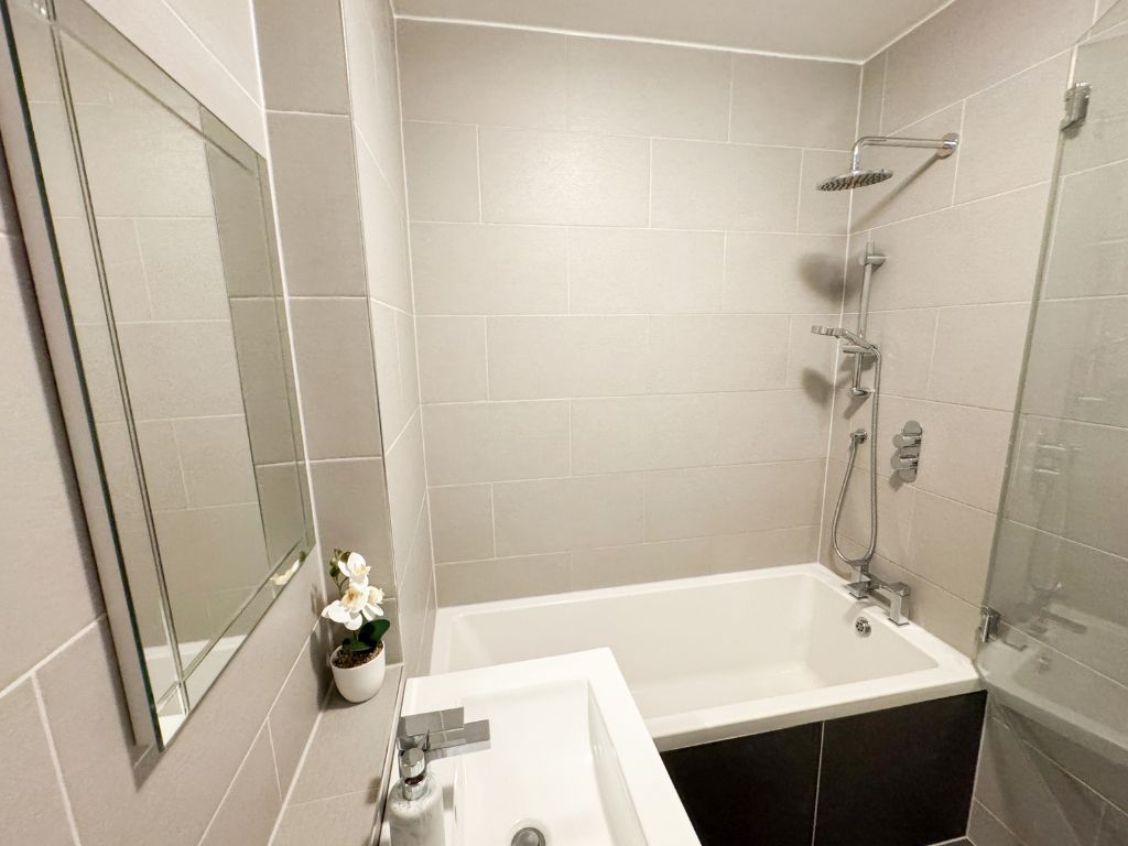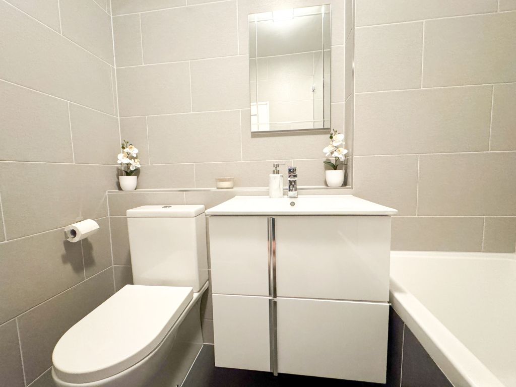 Two spacious double bedrooms each with fitted wardrobes offer generous accommodation while the fully tiled bathroom is styled with modern hotel-quality finishes creating a retreat-like atmosphere.