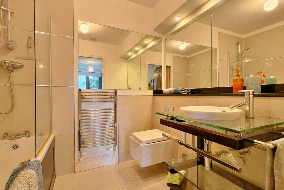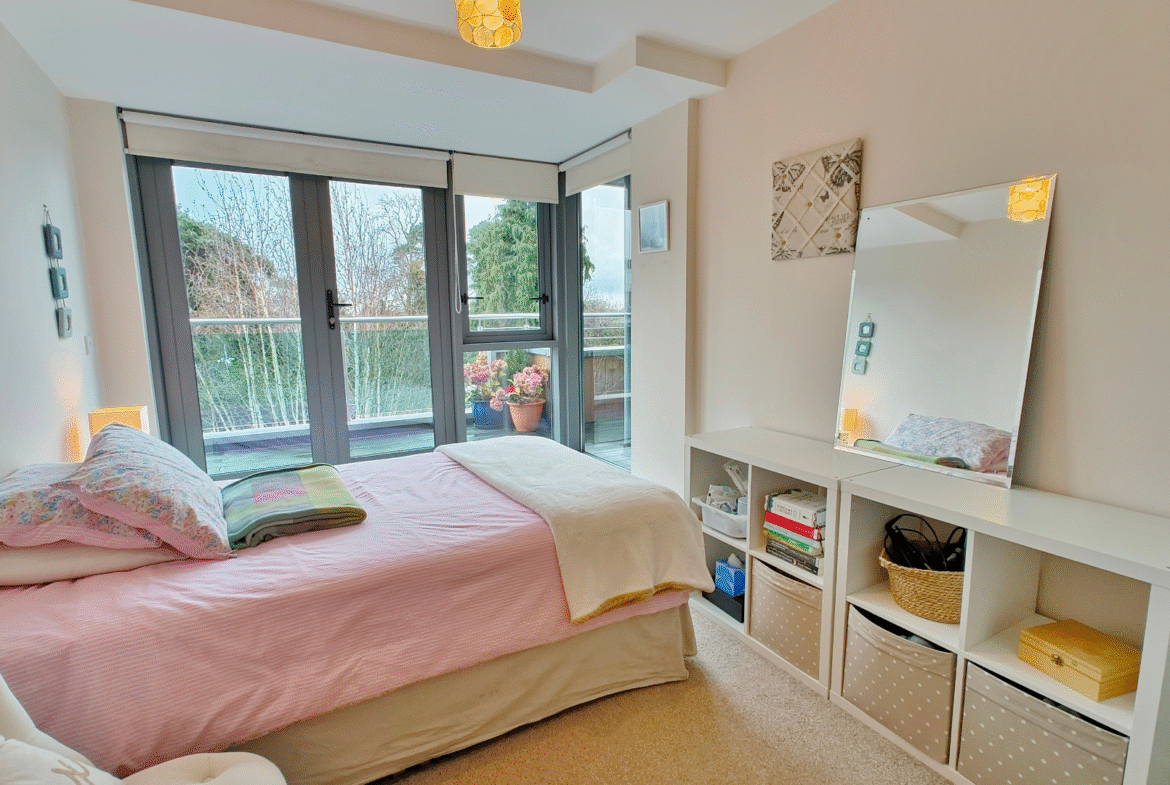 and bath, built in wardrobes with led lighting, floor to ceiling glass windows and double doors accessing the balcony. The boiler was replaced in June 2023 and regularly serviced and a new water pump was only recently fitted in November 2025, the property has been very well maintained throughout ownership.