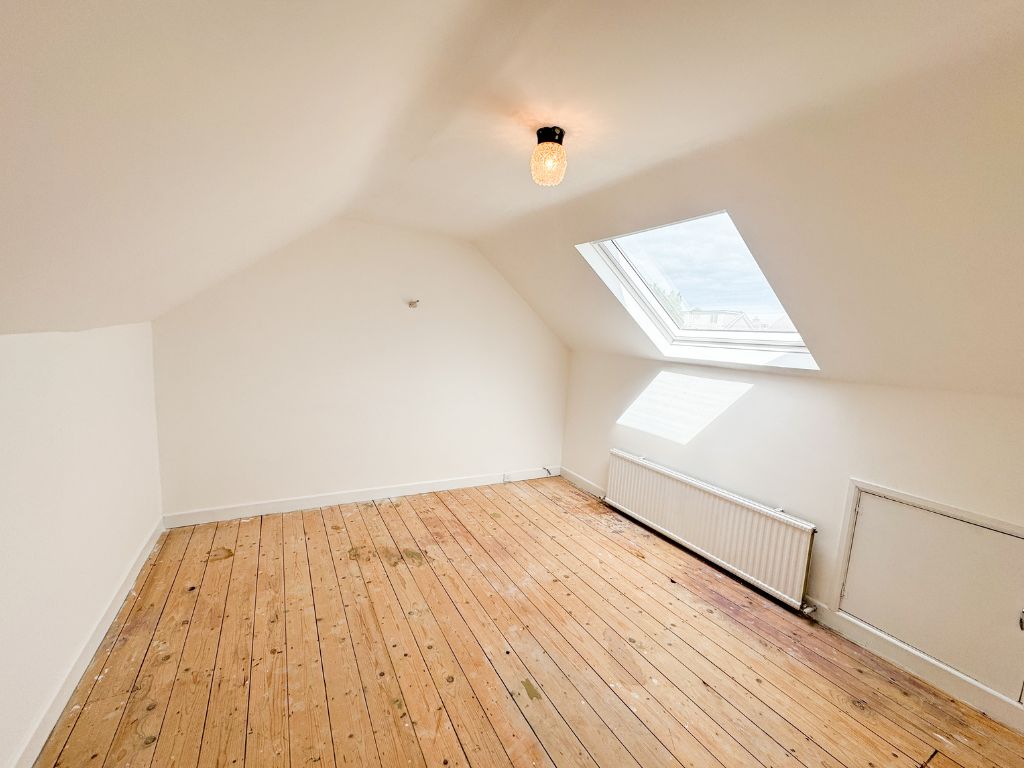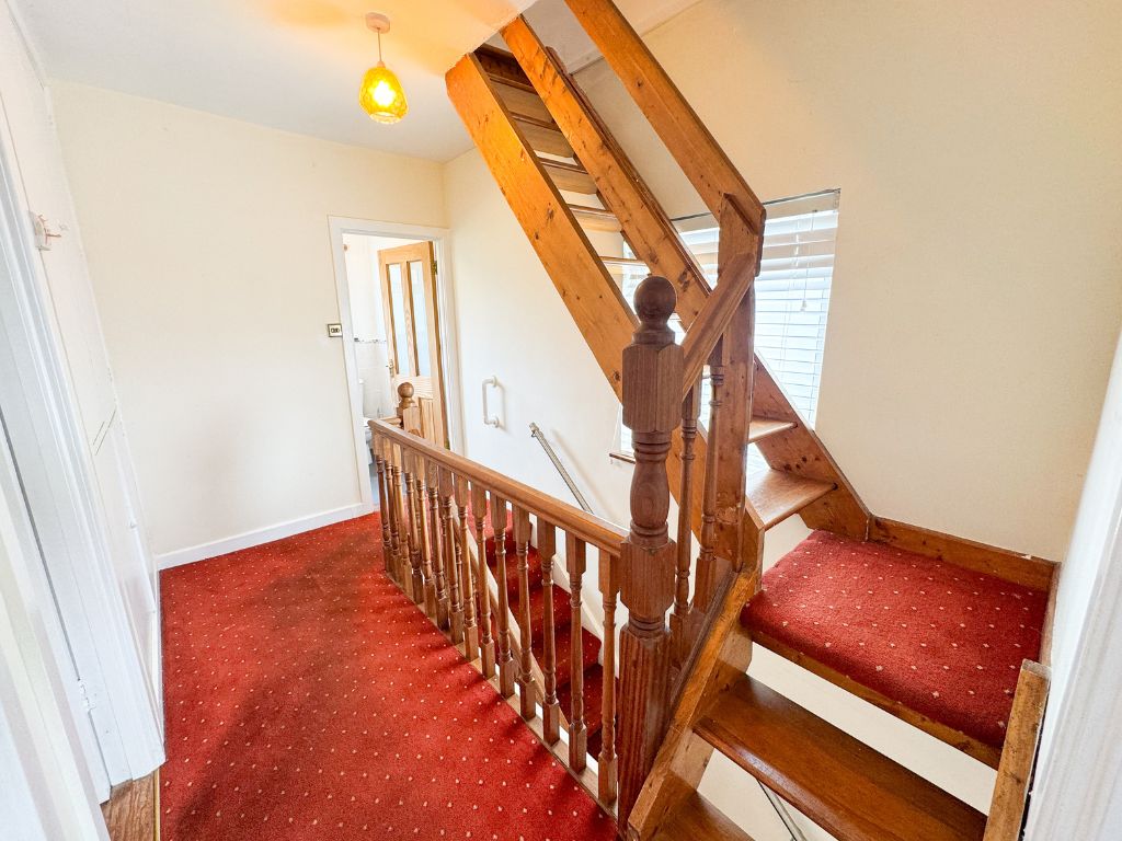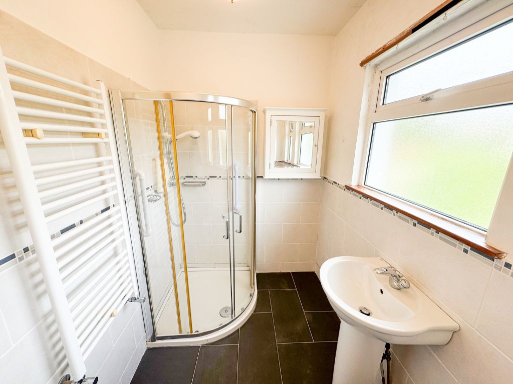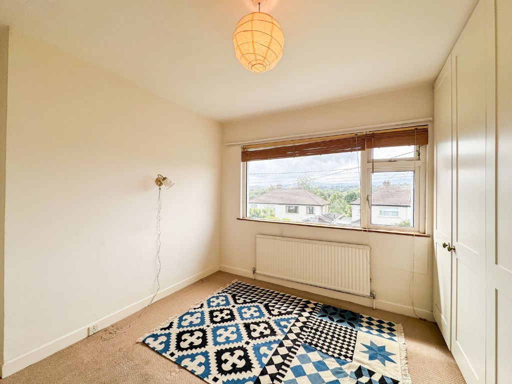 Upstairs, a gable wall window floods the landing with natural light. Three well-proportioned bedrooms include two doubles and one single with the front-facing rooms enjoying uninterrupted views of the rolling Dublin Mountains and the rear double overlooking the peaceful garden. Two of the doubles feature fitted wardrobes while the family bathroom with tiling offers a two-piece suite and walk-in shower. The recently repainted converted attic complete with Velux window provides a versatile hideaway ideal as a home office, creative space or additional storage.
