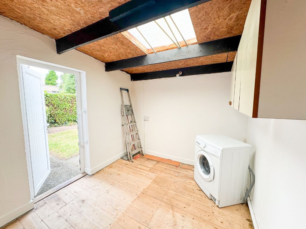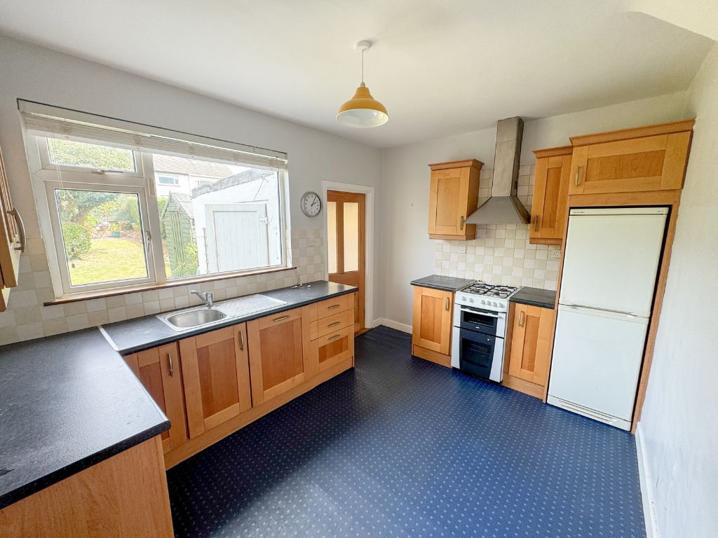 To the front a low-maintenance driveway leads up to a neat porch and bright entrance hall where understairs storage and wooden flooring set the tone for the rest of the home. The inviting sitting room enjoys high ceilings and a gas fire insert creating a cosy focal point. Half-glass panelled double doors open into the elegant dining room where continuous wood flooring and an open fire make for a warm and welcoming space, ideal for gatherings or entertaining. At the end of the hall the compact well-fitted kitchen provides direct access to the utility room, garden and the garage that is set to the front of the property.
