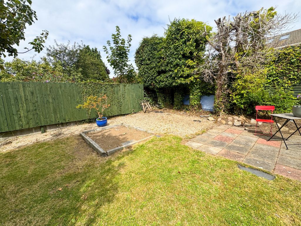 The rear garden is a true highlight with a colourful display of blooms and greenery framing a well-kept lawn surrounded by established planting and shrubs.