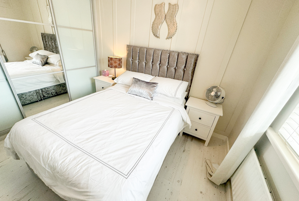 The low maintenance rear garden with sandstone paving is an ideal size for enjoying both the morning and late afternoon summer sun. A block-built shed with power provides convenient storage or can be used for additional purposes. In the garden you’ll find a private sun trap that’s perfect for al fresco dining or entertaining guests while watching the sunset.