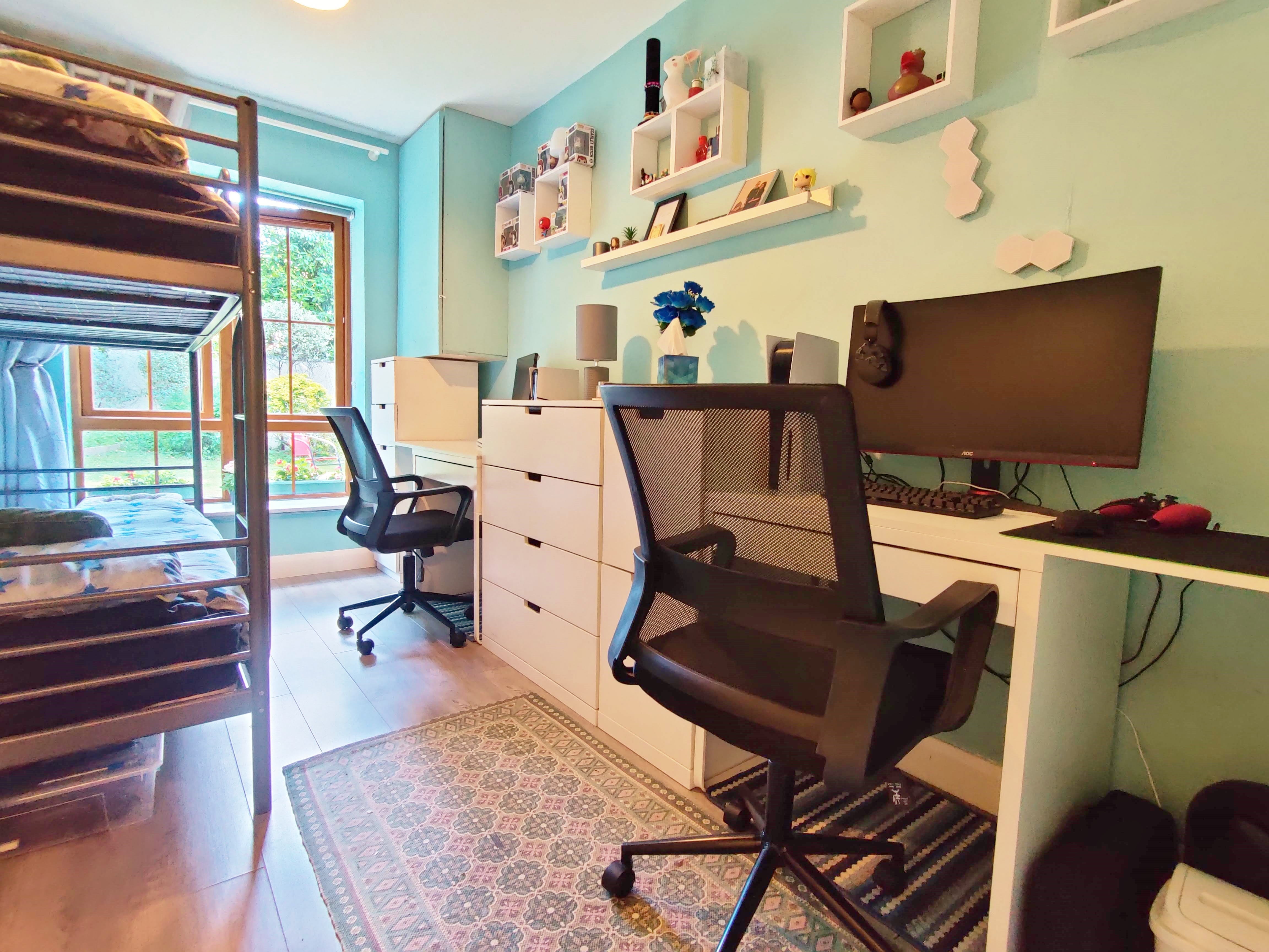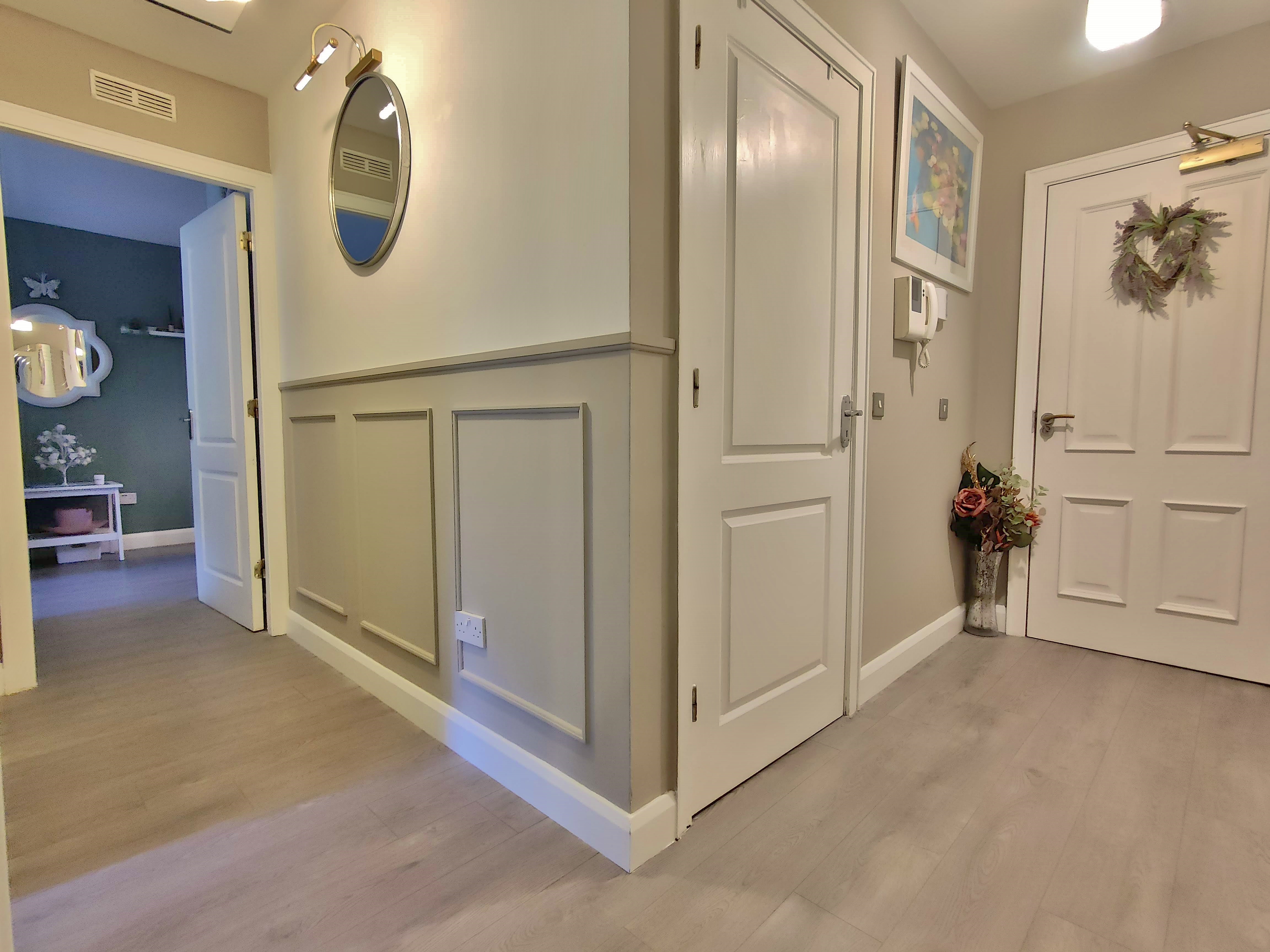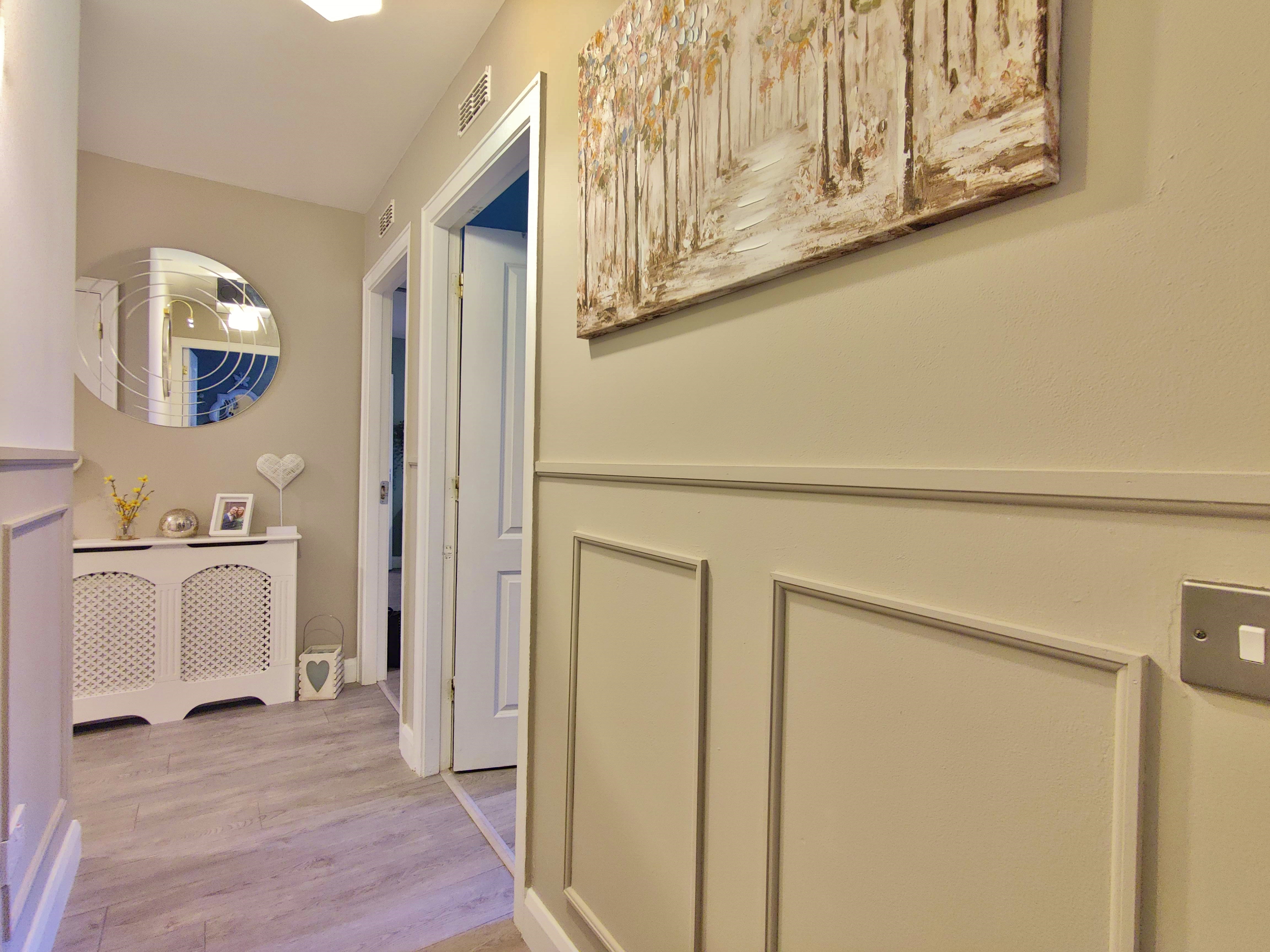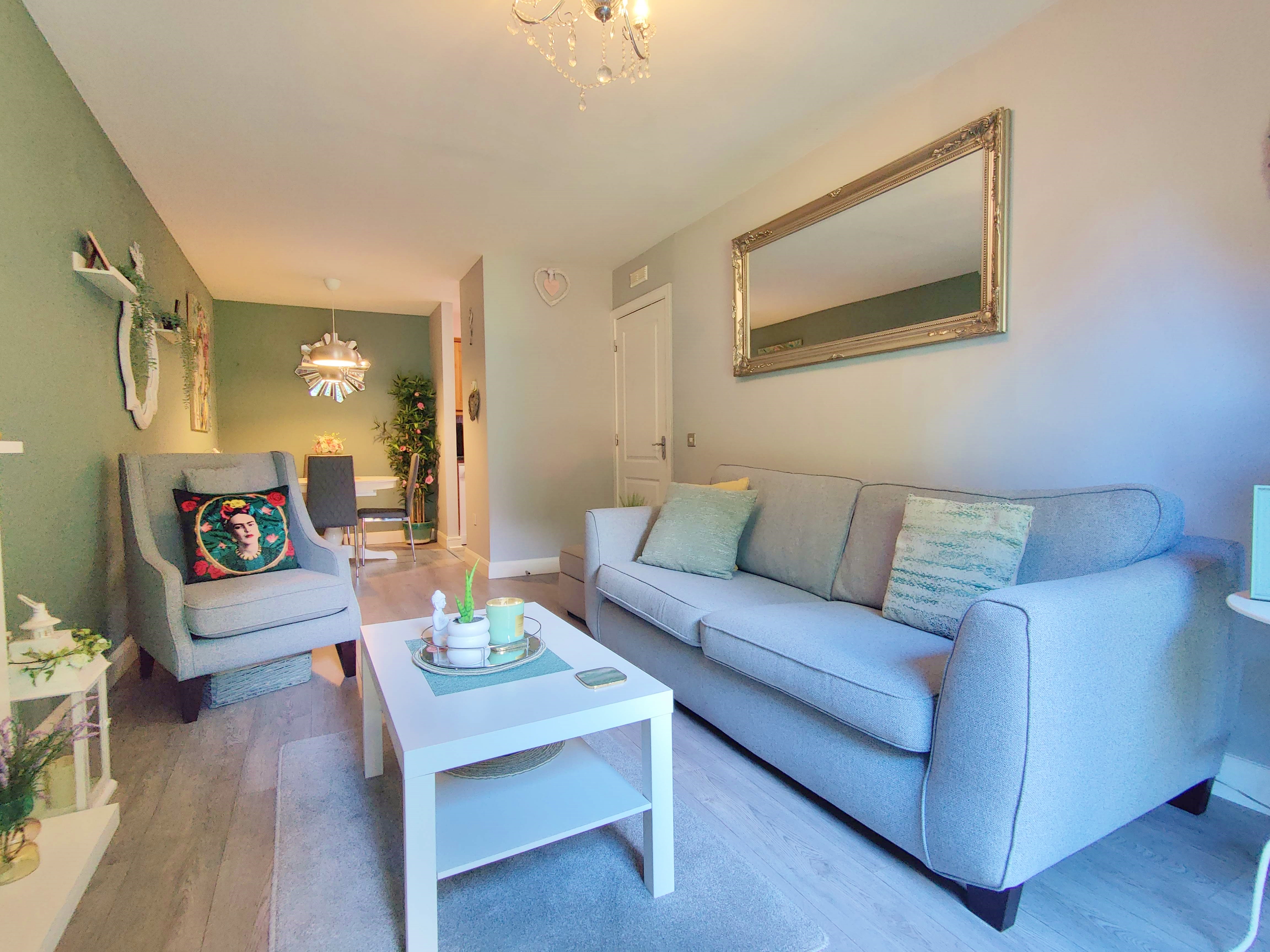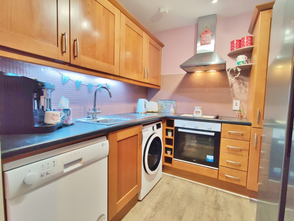 This unique apartment consists of a central L-shaped hall boasting two bedrooms, a generous master bedroom including a large window to side and ample built in wardrobe space as well as room for a small desk. The second double bedroom overlooks the garden and greenery to rear and also includes built in wardrobes, the main bathroom is in good condition and tiled throughout with shower/bath combo.